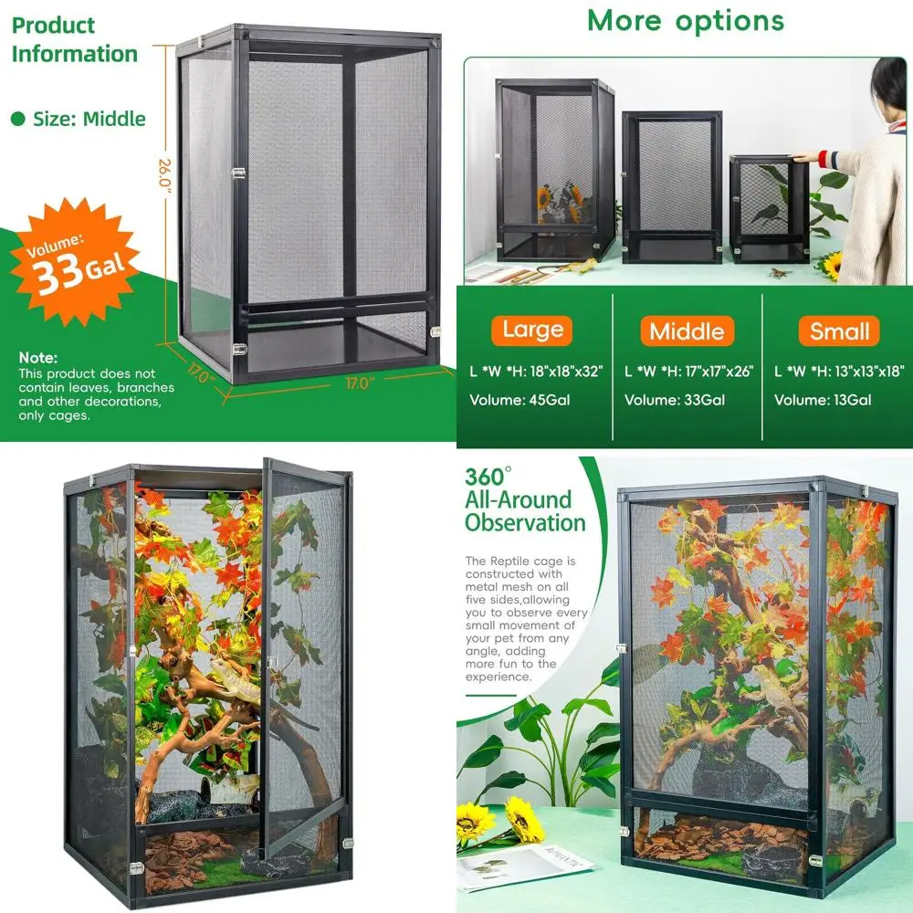 This 33-gallon foldable reptile terrarium provides a 360° view for easy observation of your pets.