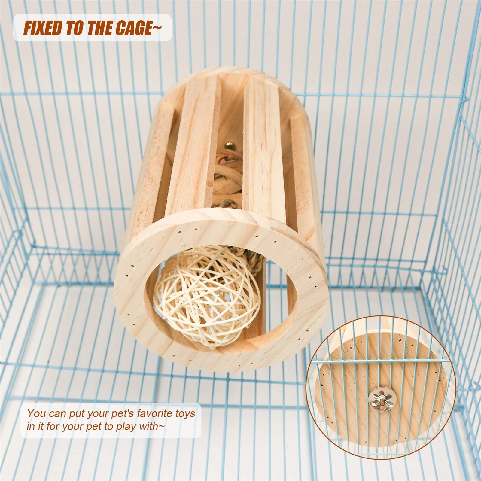 Add a natural touch to your pet’s enclosure with this cylindrical wood mountable animal feeder, designed for hay or treat storage. The wooden construction blends seamlessly into cage environments while providing a secure and elevated feeding solution. Easy to mount and refill, it helps reduce waste and keeps food off bedding. Ideal for rabbits, guinea pigs, chinchillas, hamsters, and other small animals, this feeder supports organized and enrichment-based feeding.