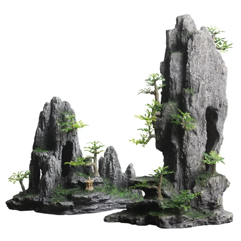 This rockery mountain resin decoration adds depth and character to any aquarium or fish tank.